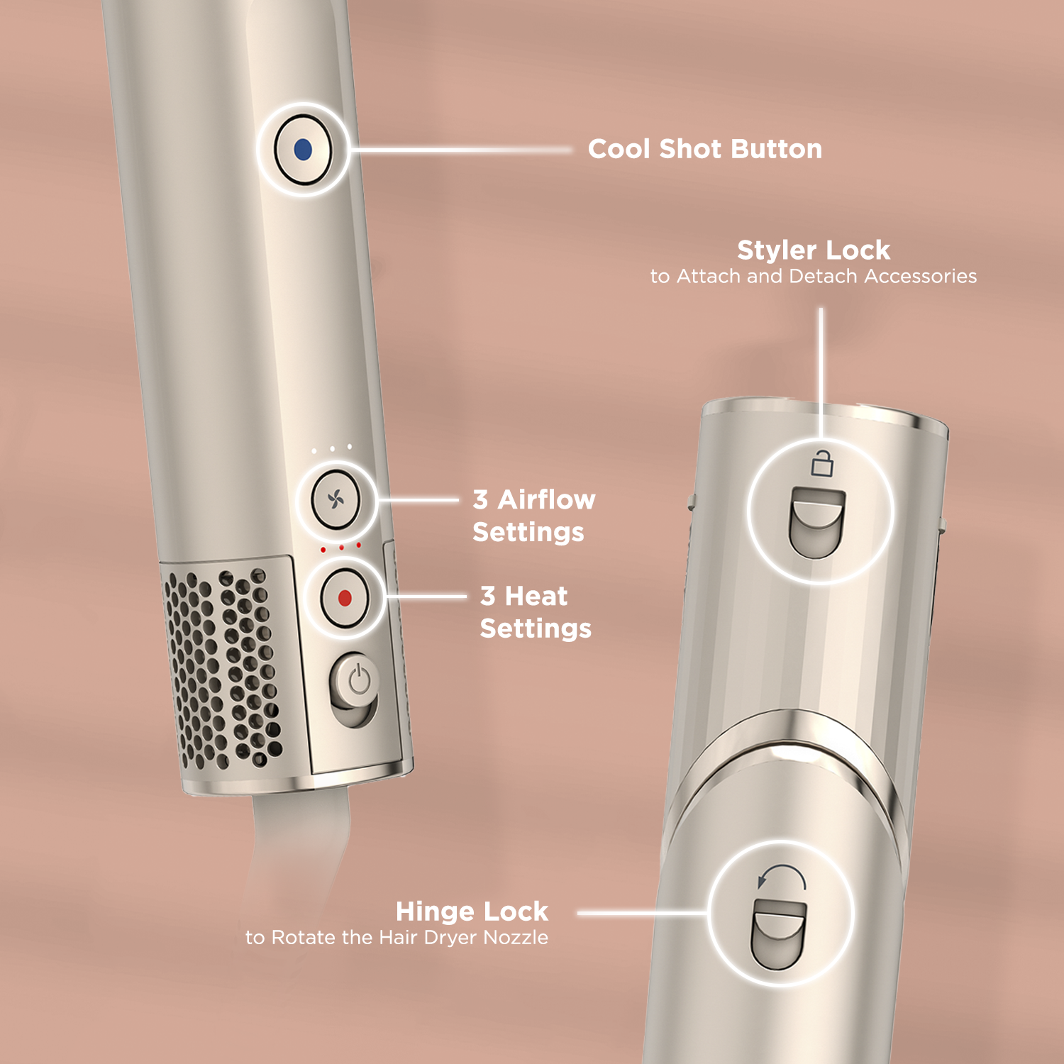 4 Temperature - low, medium, high heat and one cool shot.